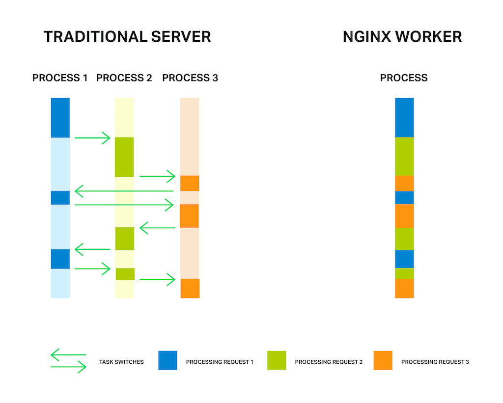 问题是,机器速度可能不是问题。 Web应用通常运行缓慢,因为计算机在不同类型的任务之间切换:通过数千个连接与用户交互、从磁盘访问文件以及运行应用代码等等。 应用服务器可能会出现故障 - 内存不足、将大块内存交换到磁盘,以及许多请求等待单个任务(如磁盘 I/O)。